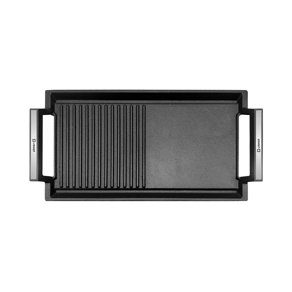Также такая гриль-панель совместима с газовыми и инфракрасными варочными панелями. На индукционных варочных панелях такую гриль-панель лучше всего разместить в Flexi Zone. Такая гриль-пластина представляет собой накладную рифленую панель, выполненную из чугуна с антипригарным покрытием. Гриль-панель позволяет готовить мясо, рыбу и овощи с аппетитной корочкой и сохранить сочность продуктов.