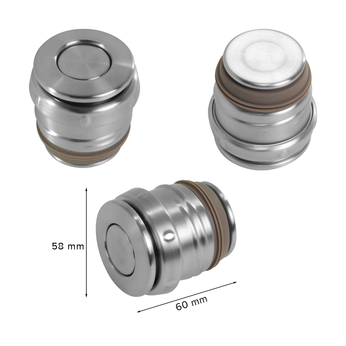 Металлическая пробка с кнопкой для термоса серии TW подходит для сохранения заданных температур как для горячих (чай, кофе, кипяток), так и для холодных напитков (холодный чай, коктейли, напитки со льдом).