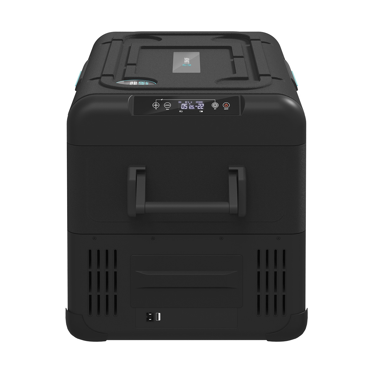 Автомобильный холодильник оснащен удобной сенсорной панелью управления, а дополнительные функциональные возможности, такие как память настроек, подсветка и сливное отверстие, делают эксплуатацию ещё более удобной. А переноска автохолодильника становится более комфортной благодаря наличию усиленных складных ручек. Крышка холодильника имеет механические замки с двух сторон, поэтому её можно открывать в двух направлениях и даже полностью снимать. На крышке есть четыре круглых углубления, которые можно использовать в качестве подстаканников для напитков.