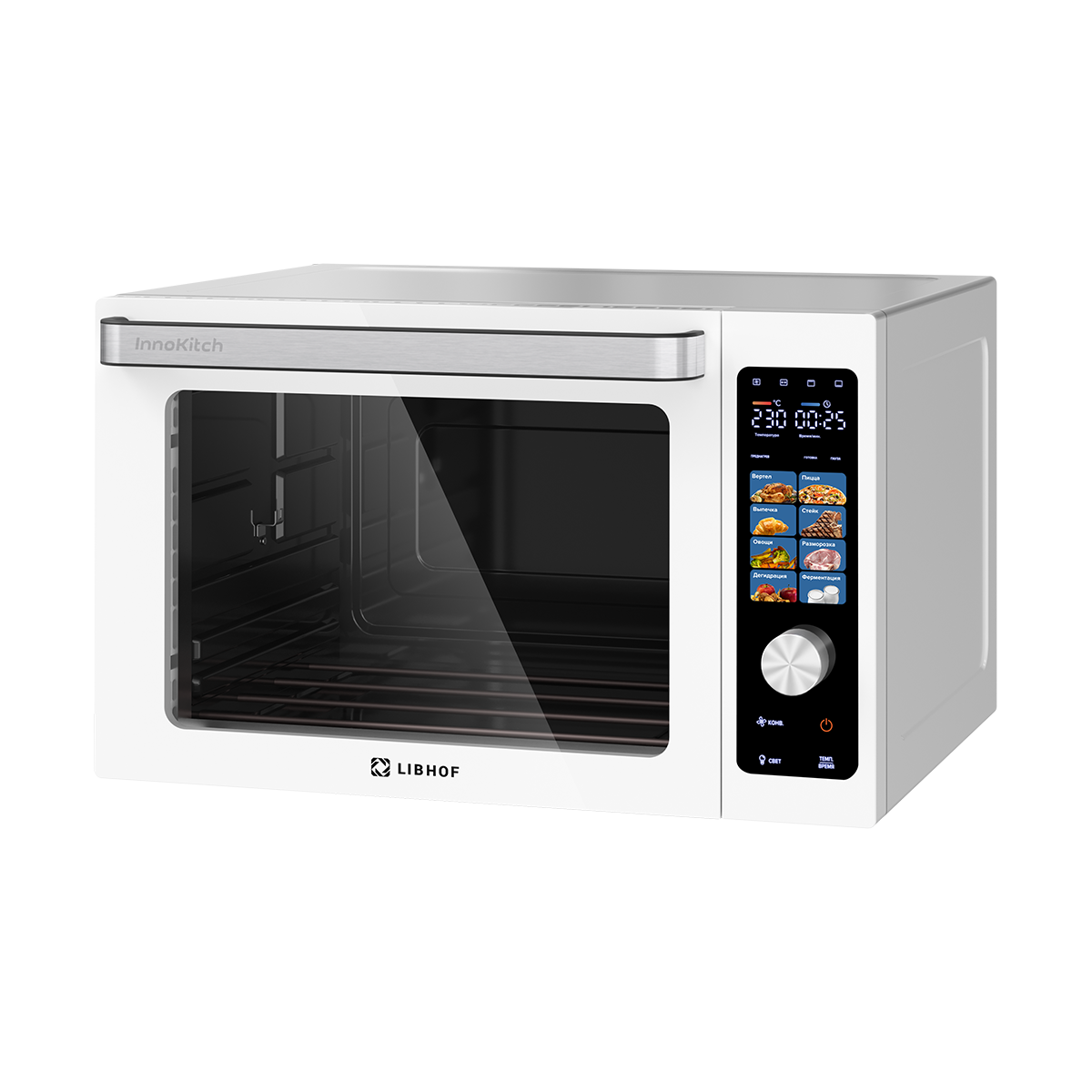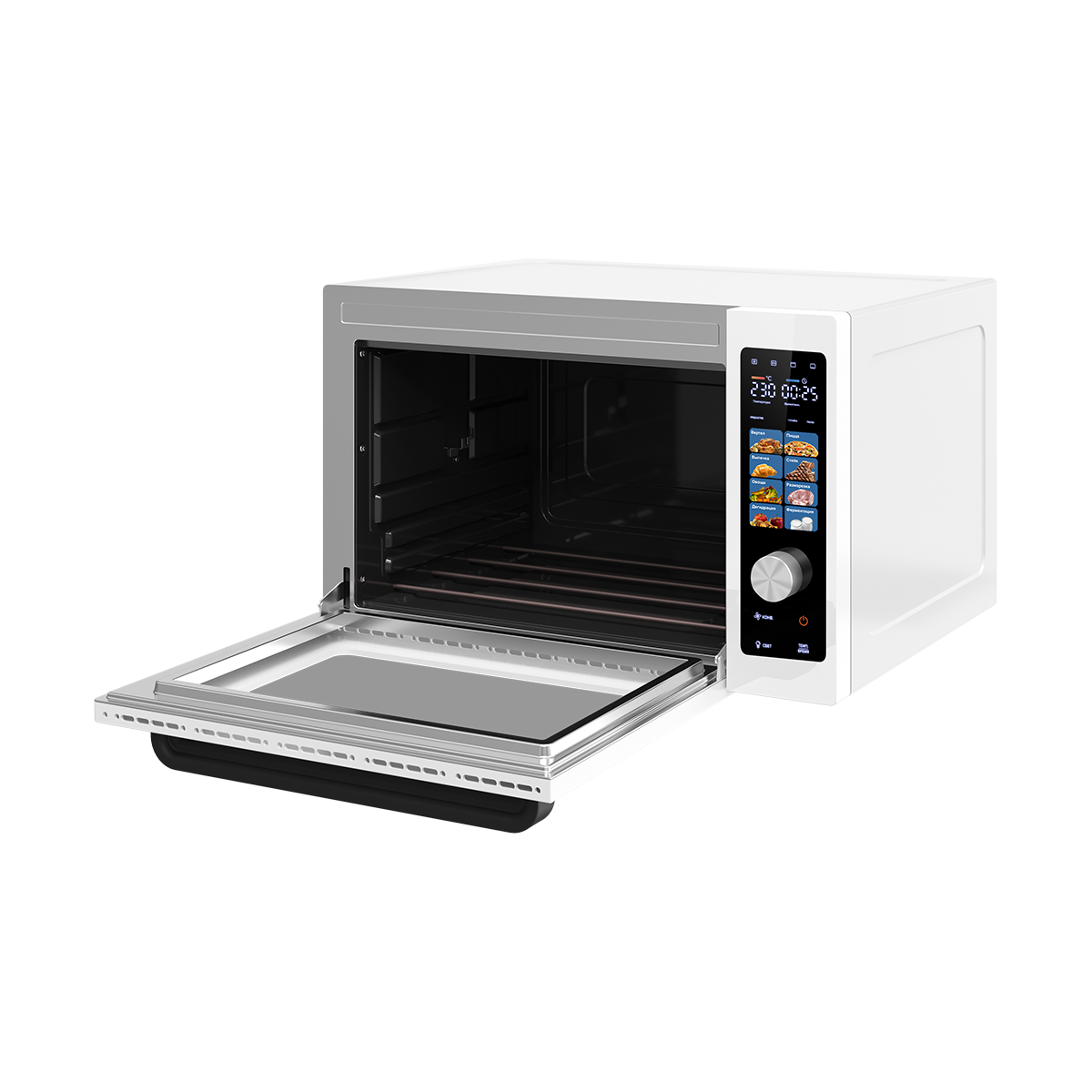 Очень удачная мини-печь. Пользуемся на даче — заменяет полноценную духовку. Выпечка получается равномерной, ничего не подгорает благодаря конвекции. Объёма хватает и для пирогов, и для мяса. Белый цвет смотрится аккуратно и не перегружает интерьер.