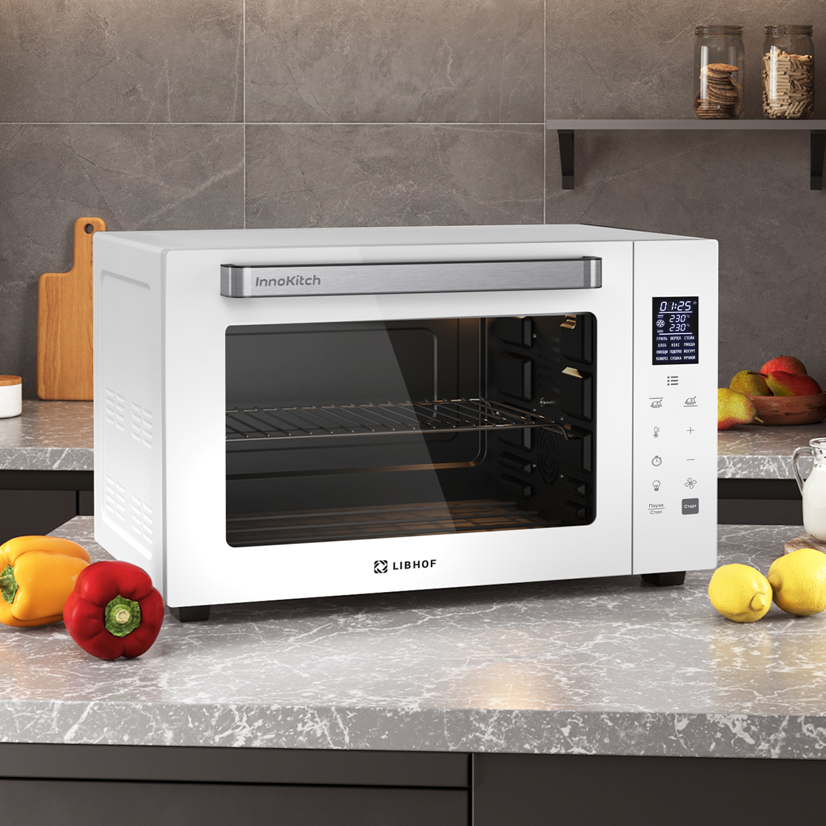 Электрическая настольная духовка Libhof OVN-50 white – это многофункциональный прибор, с помощью которого можно приготовить много разнообразных блюд. Мини-печь имеет 12 режимов работы, среди которых есть режим ферментации для приготовления вкусных кисломолочных напитков и режим дегидрации для сушки овощей.
