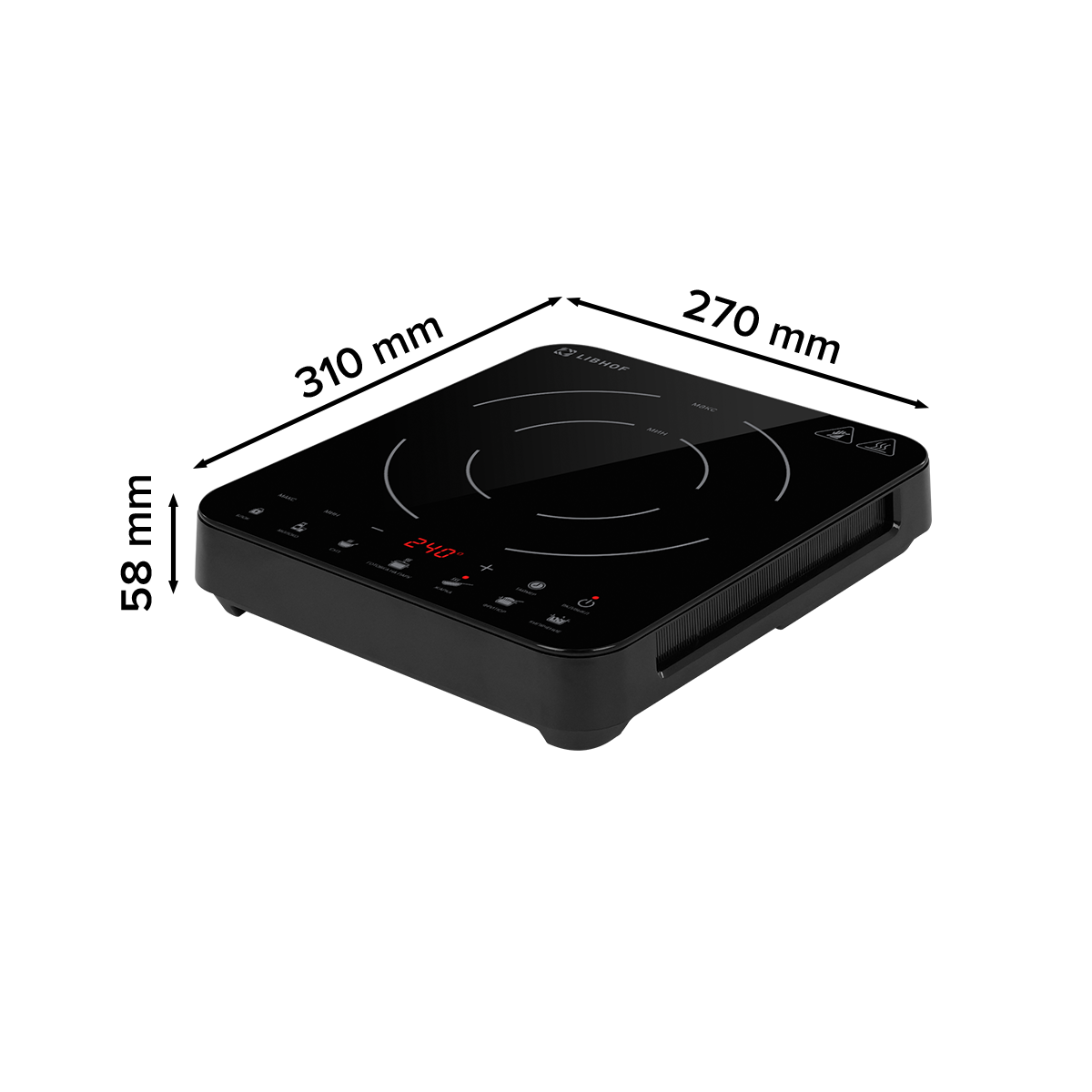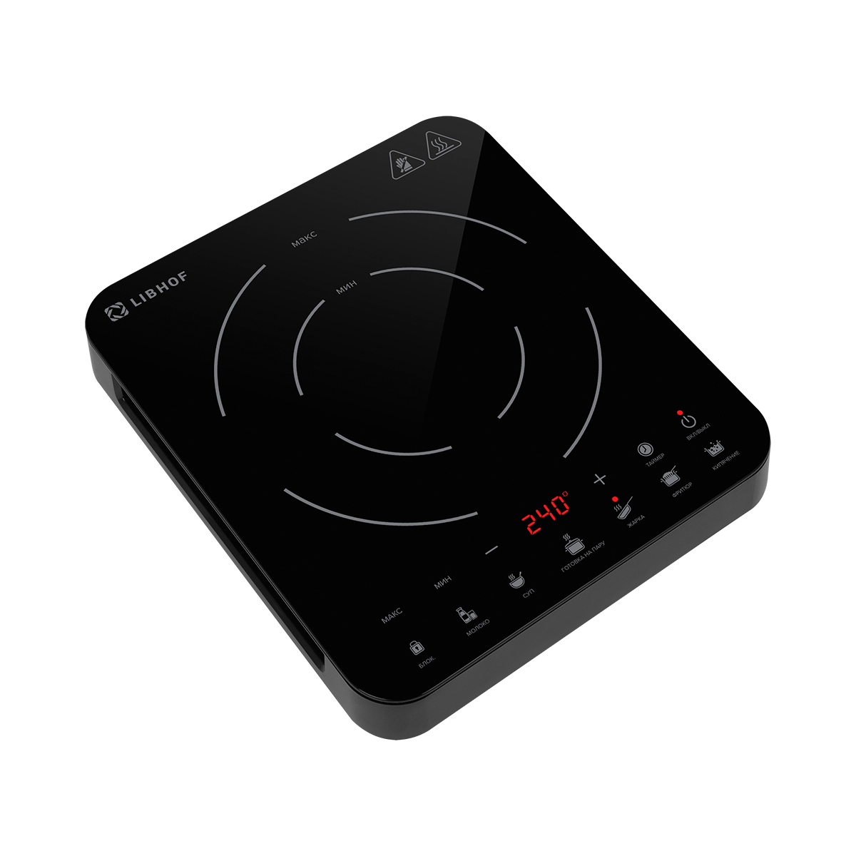 Электрическая настольная плита имеет 10 уровней нагрева и 6 автоматических программ приготовления, что упрощает процесс готовки и позволяет быстро подобрать оптимальный режим. Функция распознавания посуды гарантирует: конфорка заработает лишь тогда, когда на неё установлена соответствующая ёмкость. Важные защитные функции включают защиту от перегрева, защита от выкипания и блокировку от детей, а индикация остаточного тепла информирует о состоянии конфорки после выключения. Сенсорное управление обеспечивает удобство использования, а таймер на 3 часа позволяет запрограммировать время готовки точно до нужного момента.