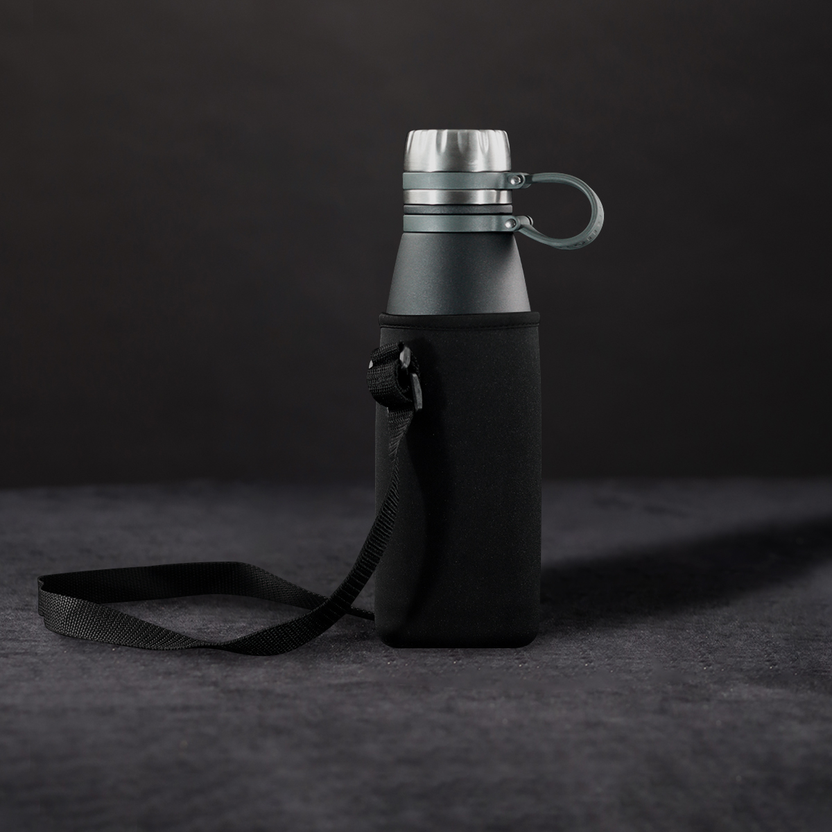 Колба термоса изготовлена из нержавеющей стали SUS 316, обеспечивающей превосходную термоизоляцию и вкусовые качества напитка. Узкая горловина с винтовой крышкой из нержавеющей стали обеспечивает герметичность, что предотвращает протекание и позволяет без опасений носить термос в сумке или рюкзаке. Силиконовый уплотнитель дополнительно гарантирует защиту от протекания, а силиконовый ремешок надежно фиксирует открытую крышку. Благодаря удобной форме спортивный термос можно легко брать с собой на пробежки и тренировки.