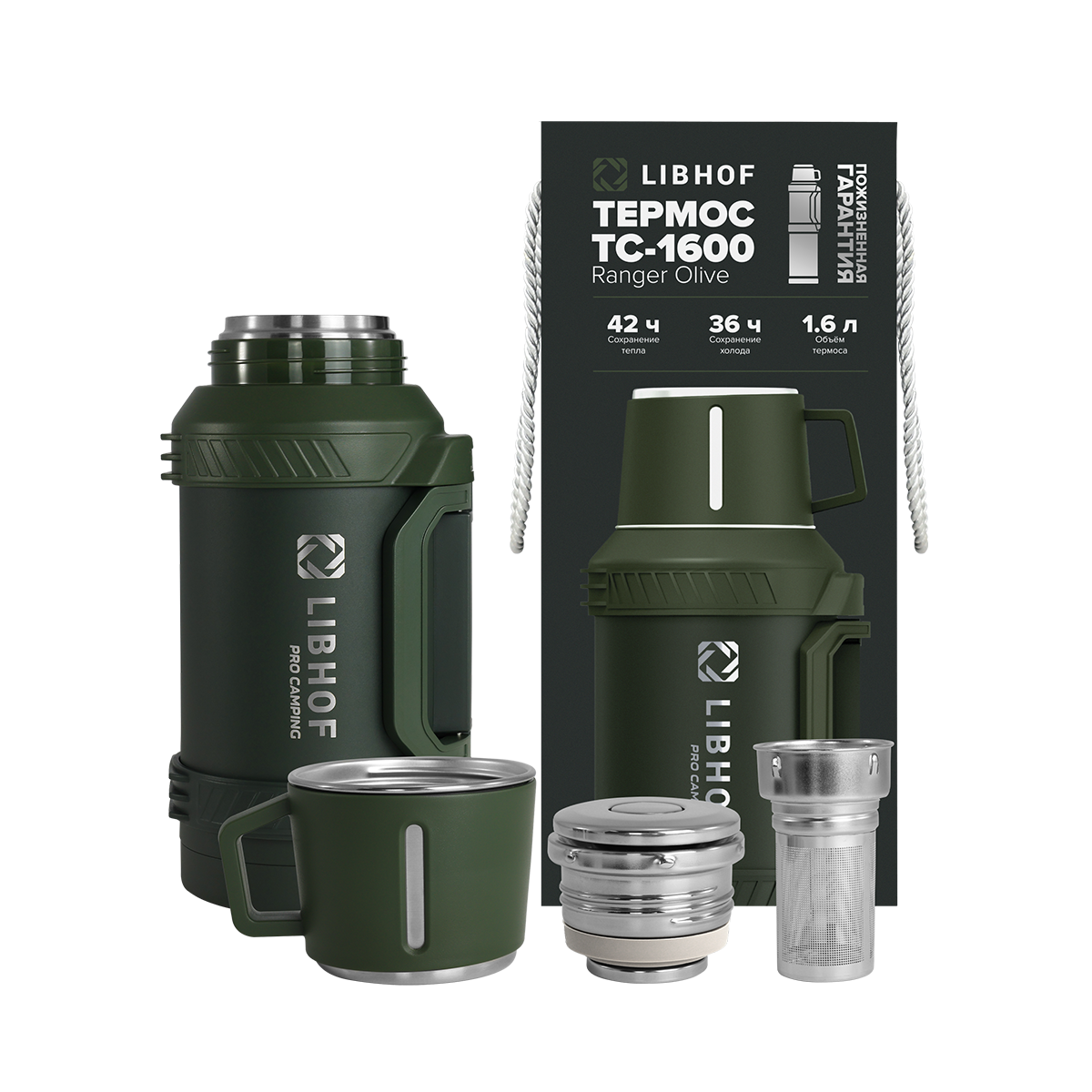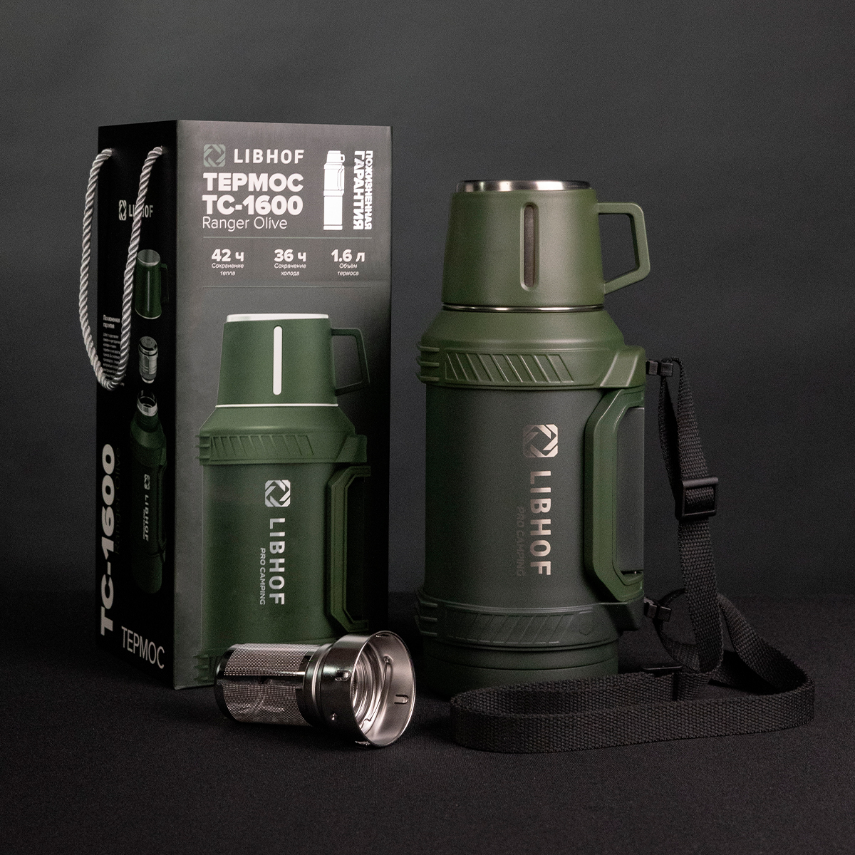 Термос Libhof TC-1600 ranger olive – универсальный термос для напитков объемом 1,6 литра.