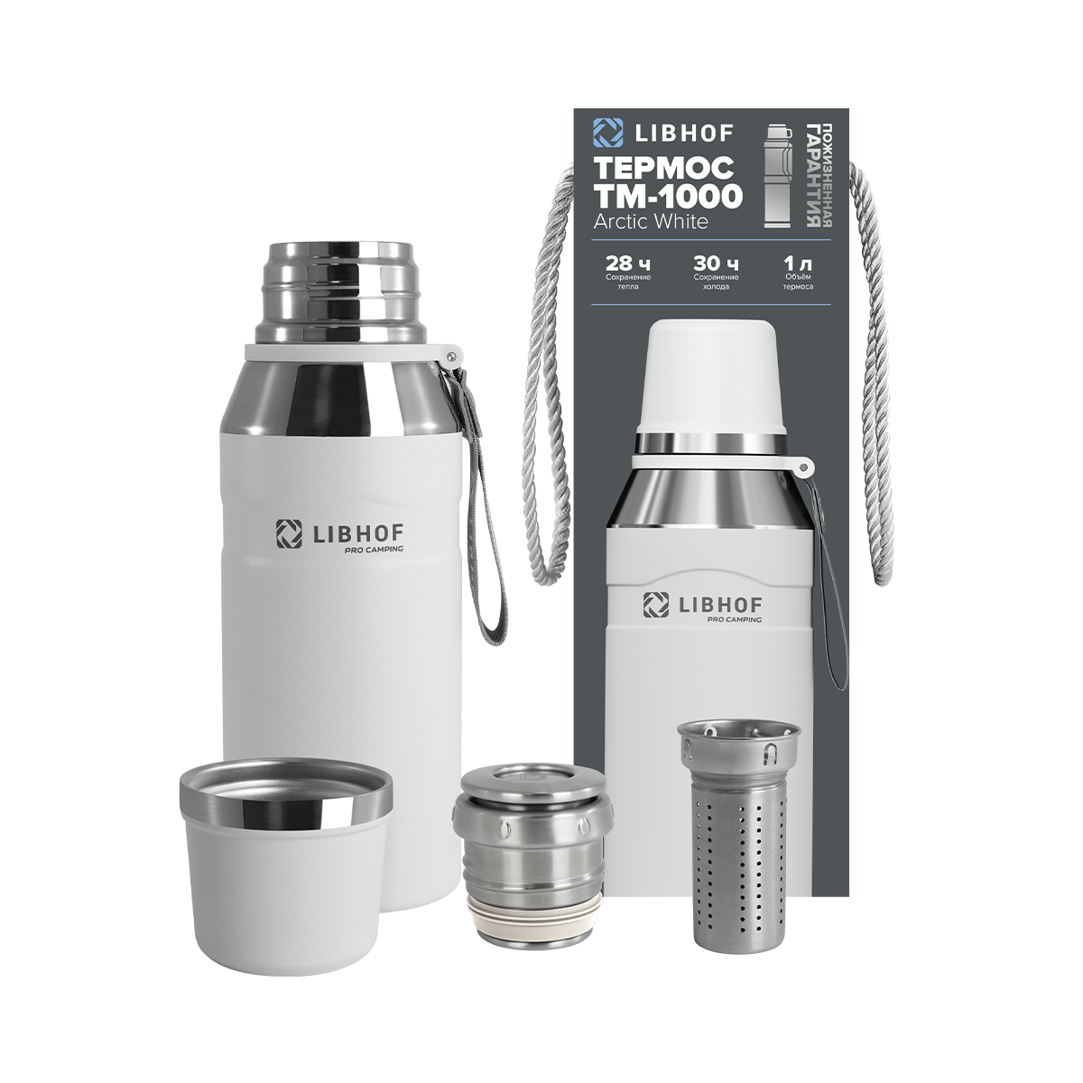 Термос для напитков Libhof TM-1000 arctic white представляет собой стильный термос, который станет надежным спутником как в городе, так и в прогулках на природе.