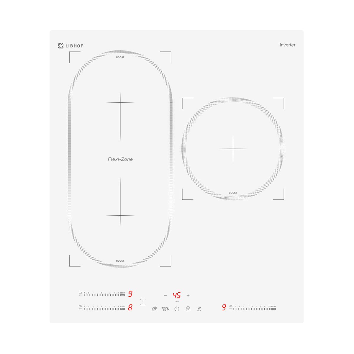 Встраиваемая варочная панель Libhof CH-62453I white с 3 конфорками и технологией непрерывного нагрева оснащена всеми необходимыми функциями для комфортного и безопасного приготовления блюд.