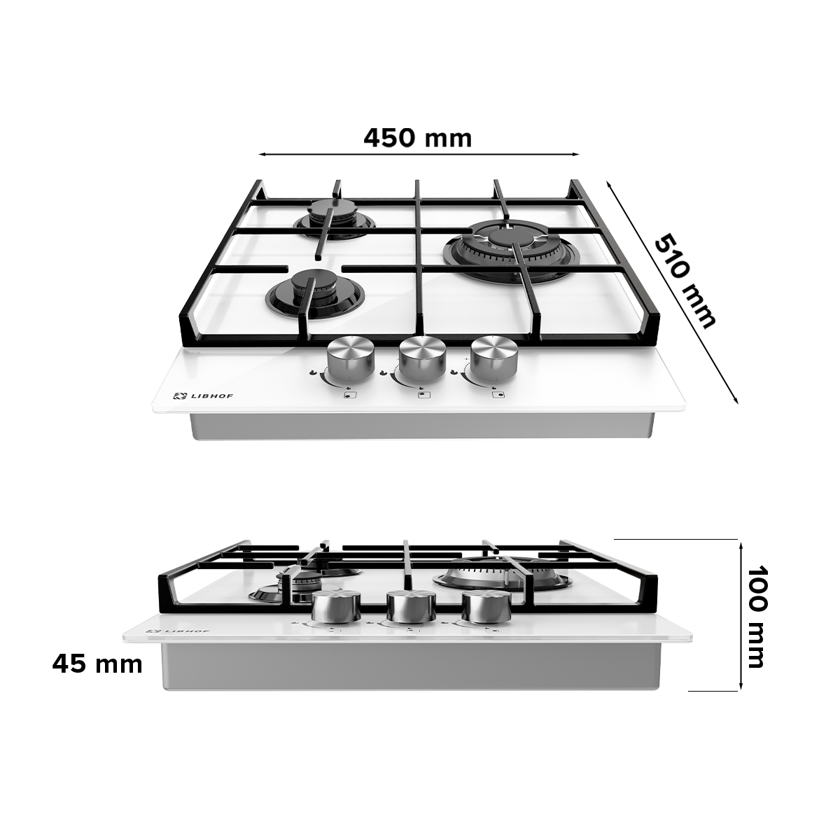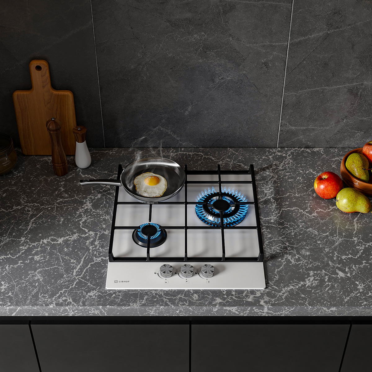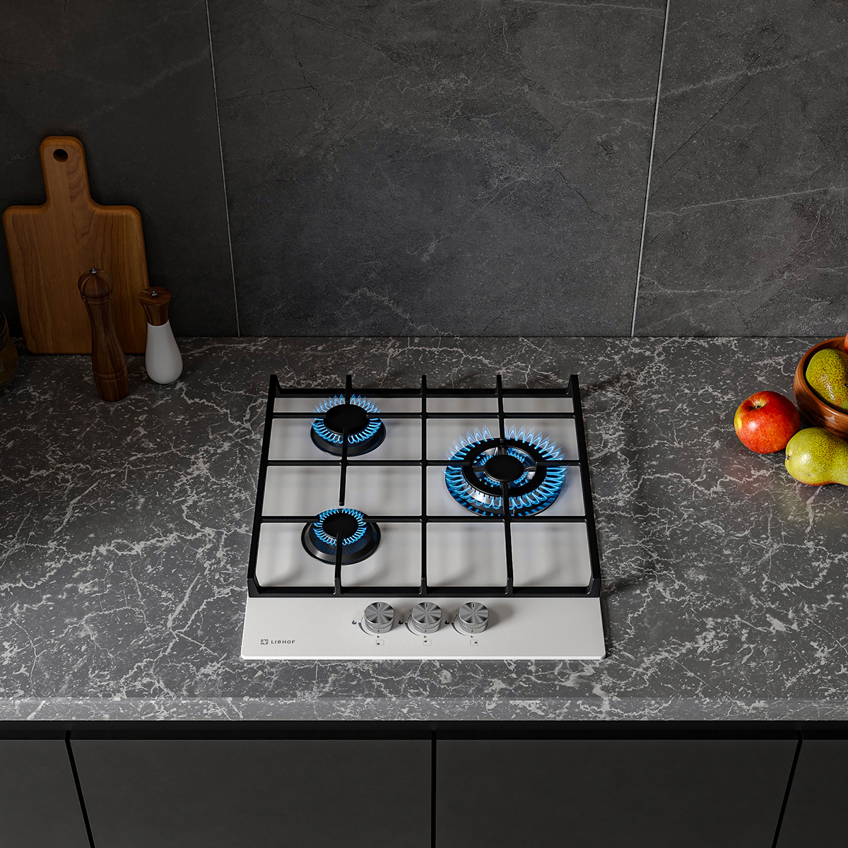 Газовая варочная панель на 3 конфорки Libhof GH-453 white объединяет в себе все необходимые функции для современной кухни.