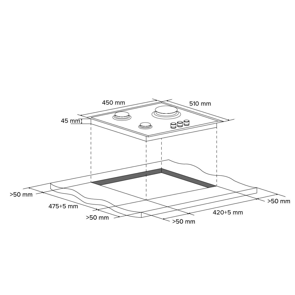 Толщина столешницы для встраивания, мм