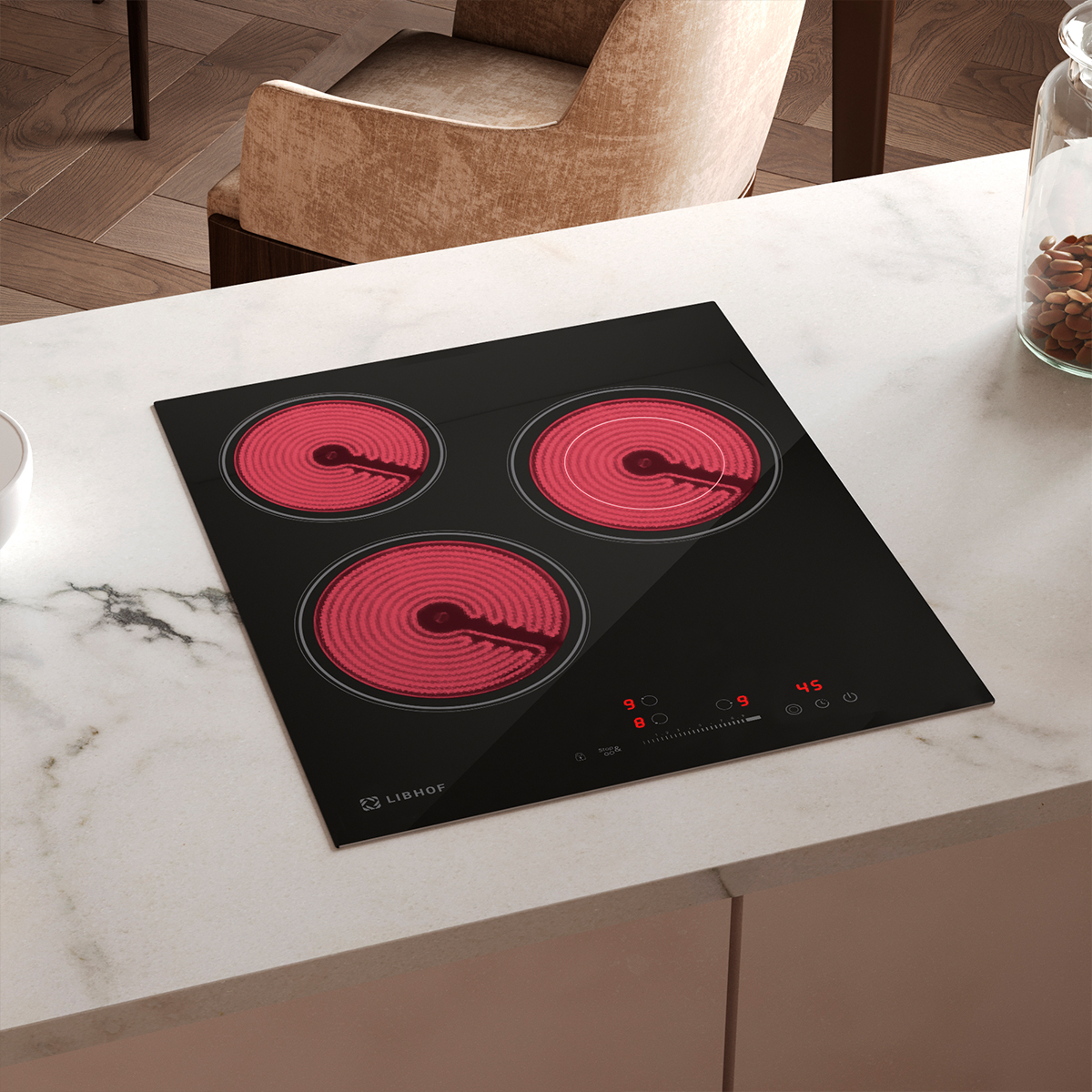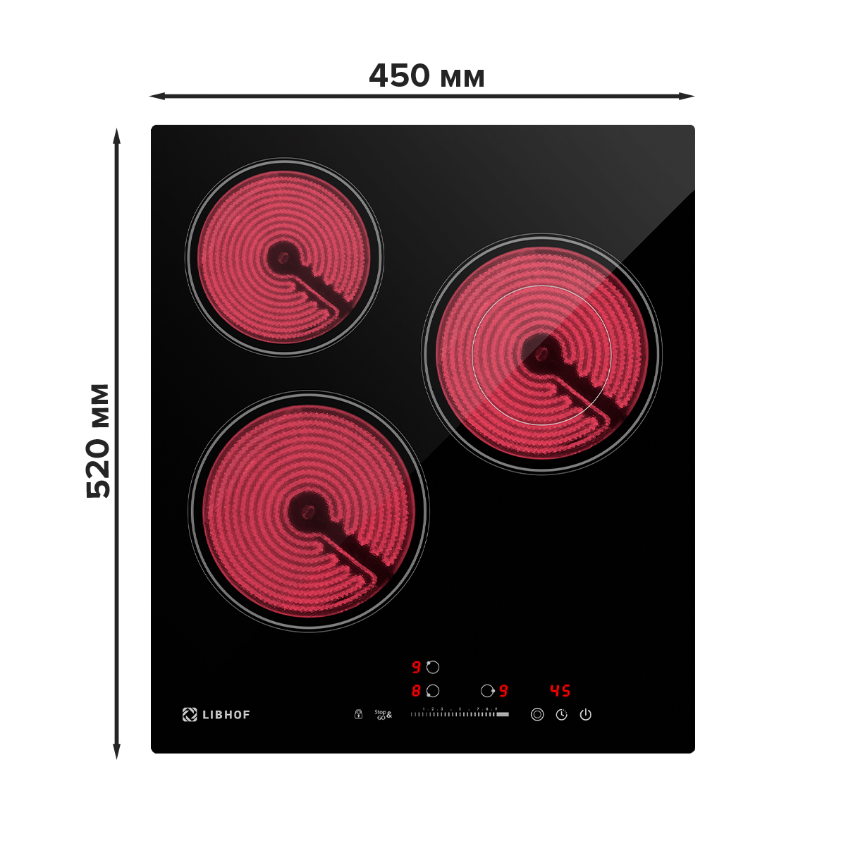 Инфракрасная варочная панель Libhof PH-50453C выполнена из стеклокерамики черного цвета, что подойдет для различных стилей интерьера. Электрическая варочная панель 3 х конфорочная с шириной встраивания 45 см подойдет для небольших кухонь или квартир-студий. Одна из конфорок оснащена зоной расширенного нагрева, благодаря этому вы можете без труда использовать большие кастрюли и сковородки, получая при этом равномерное распределение тепла. Варочная панель обладает 9 ступенями мощности, что позволяет точно настраивать температуру нагрева в соответствии с потребностями приготовления. Функция Stop and go предоставляет возможность временно приостановить процесс приготовления.