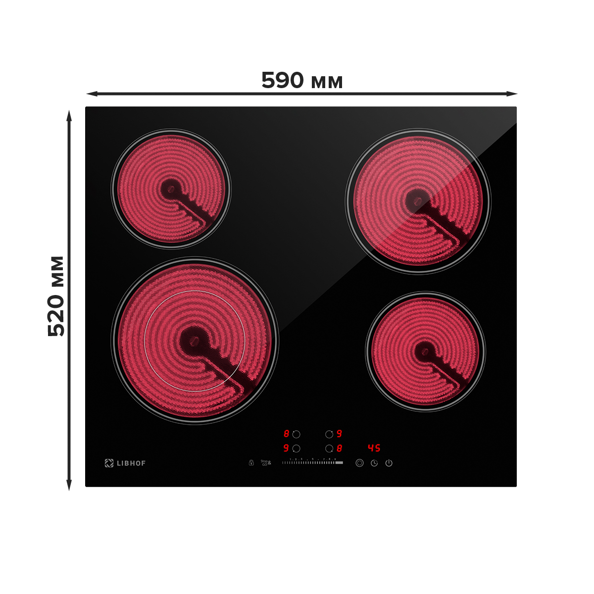 Электрическая варочная панель hi light Libhof PH-64604C выполнена из черного керамического стекла, что подойдет для различных дизайнов интерьера и хорошо будет сочетаться с другой кухонной техникой. Электрическая варочная панель 4 конфорочная имеет ширину встраивания 60 см с различными мощностями нагрева. Одна из конфорок оснащена зоной расширенного нагрева, что позволяет использовать кастрюли и сковороды разного диаметра. Варочная панель имеет 9 ступеней мощности, что позволяет выбрать оптимальный режим приготовления для каждого блюда. Особенностью этой модели является функция Stop and go – она позволяет временно приостановить работу панели, а затем возобновить ее с теми же настройками.