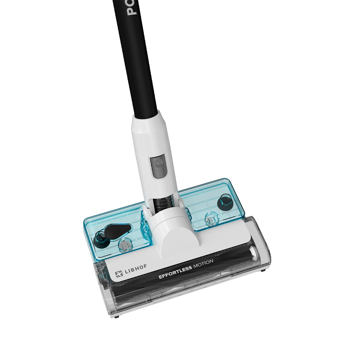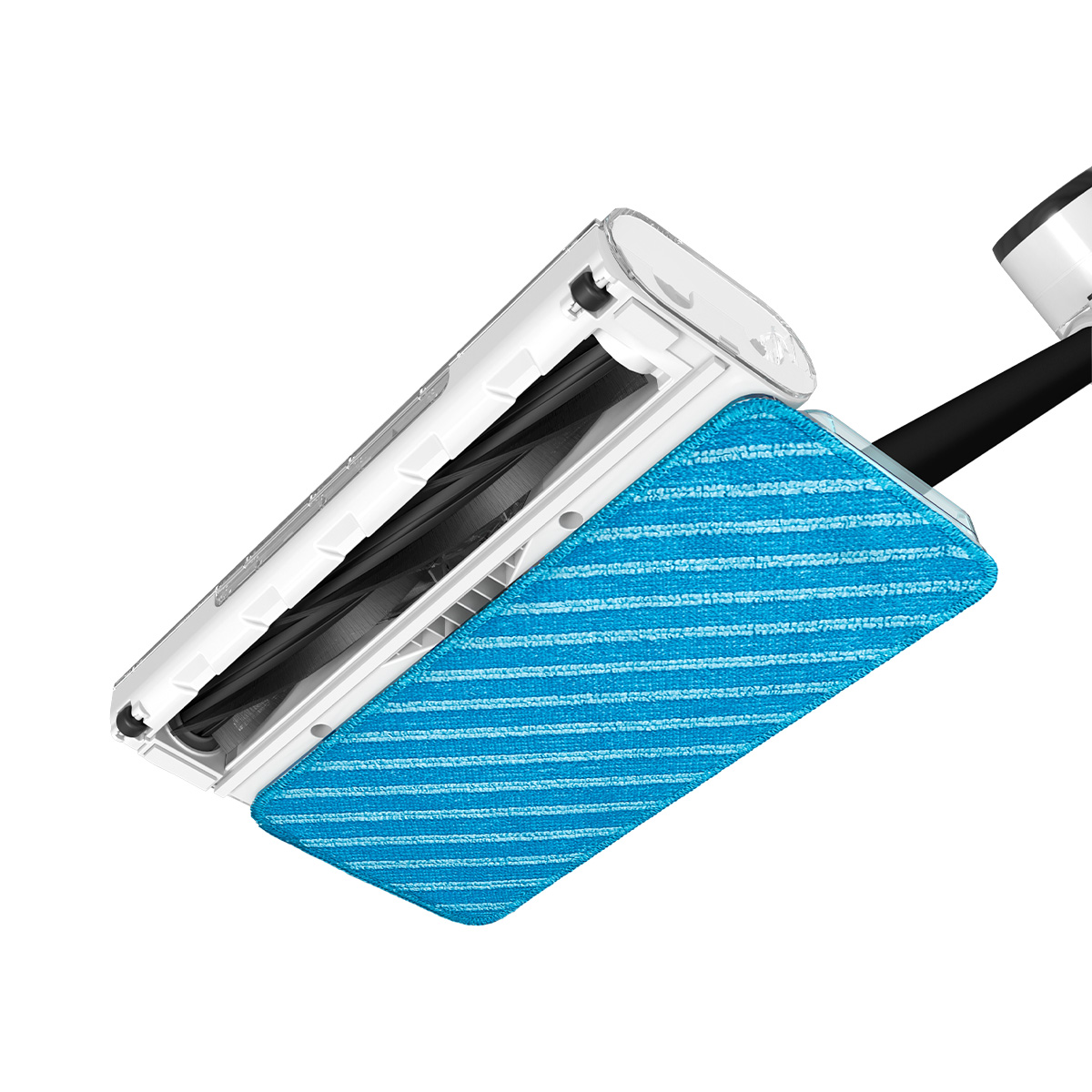 Для качественной уборки вертикальный пылесос имеет пять насадок: стандартная и мини-турбощётки для удаления шерсти и волос, щетка для удаления пыли из щелей и углов, насадка-щётка для мягкой мебели и насадка для влажной уборки. Пылесос вертикальный для сухой и влажной уборки эффективно собирает пыль и мелкий мусор, а затем протирает пол смоченной фиброй. Всасывающая трубка оснащена flex-модулем, который позволяет достать до самых труднодоступных мест, а подсветка зоны уборки улучшает видимость и повышает эффективность процесса.