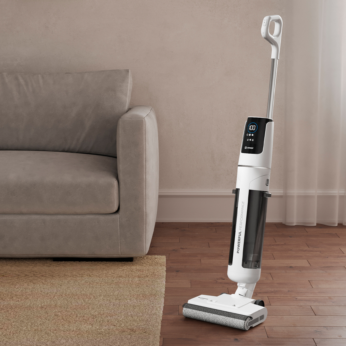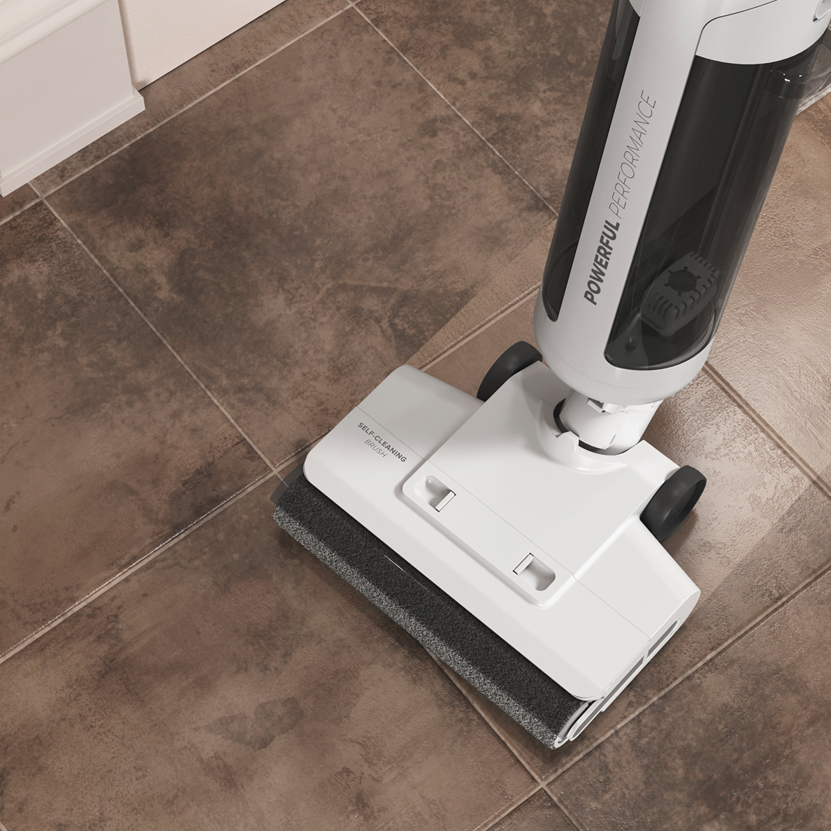 Вертикальный моющий пылесос с функцией самоочистки автоматически очищает щётку после каждой уборки, избавляя от ручной очистки и поддерживая постоянную готовность к работе.