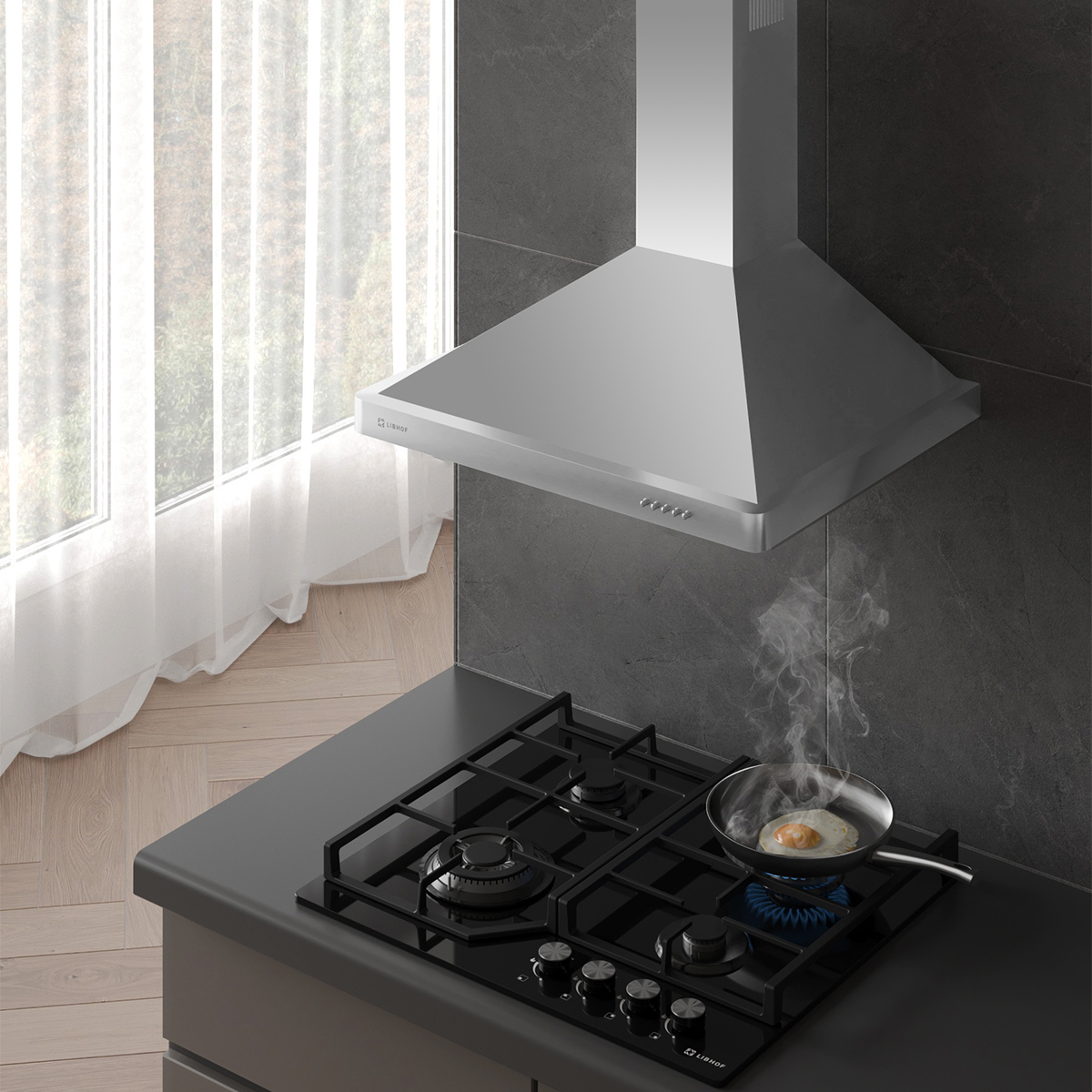 Механическое управление делает эксплуатацию вытяжки простой и удобной, а светодиодная подсветка освещает рабочую поверхность, создавая удобство во время приготовления пищи.