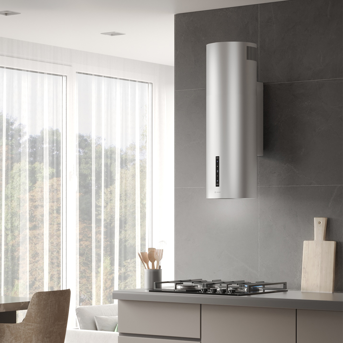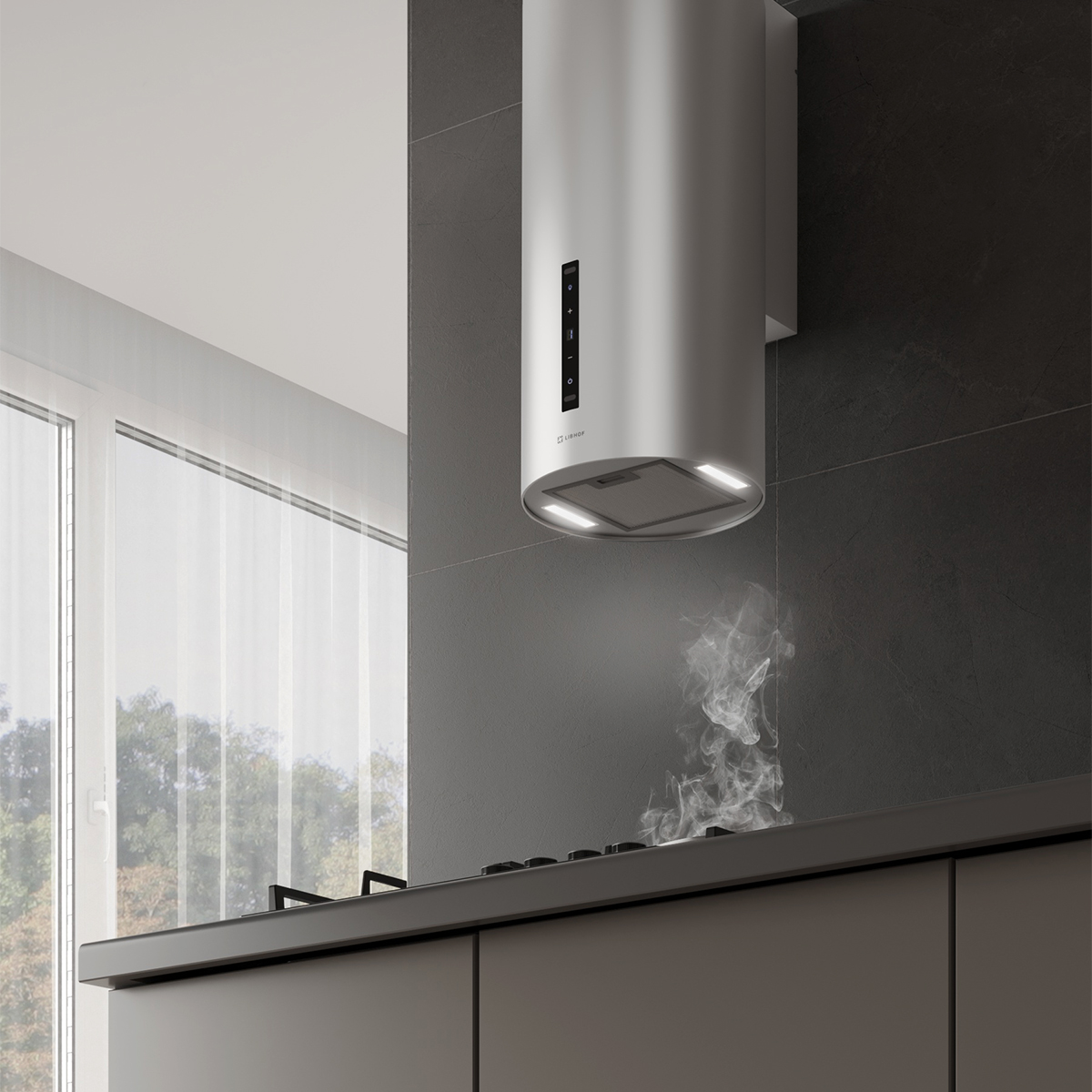 Цилиндрическая вытяжка Libhof LL-0835 silver станет стильным акцентом на вашей кухне. Кухонная вытяжка, выполненная в серебряном цвете, сочетает в себе функциональность и эстетическую привлекательность. Мощный мотор в 230 ватт обеспечивает производительность отвода воздуха в 1000 куб.м/ч в помещениях площадью до 37 кв. м.