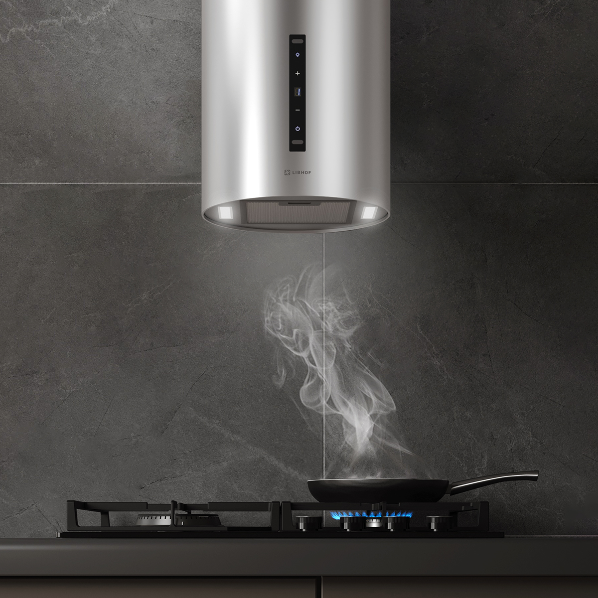 Вытяжка оборудована сенсорной панелью управления, а также поддерживает управление жестами — это делает эксплуатацию максимально удобной.